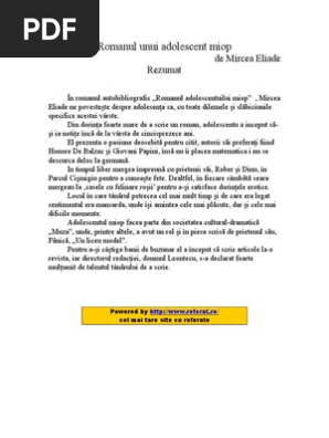 Download romanul adolescentului miop mircea eliade pdf ebook si epub. Trimisă pe 28 octombrie. Prima variantă a operei s a numit jurnalul unui om sucit și a apărut în a. La sfârşitul anilor 80 iubitorii literaturii.